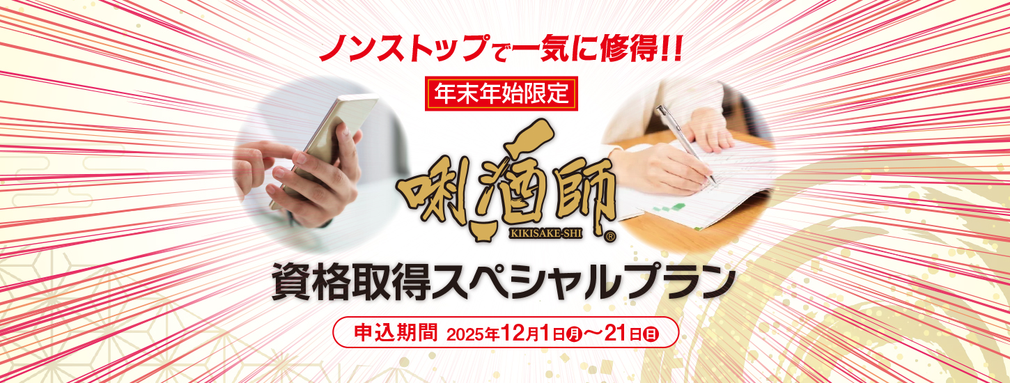 平均3か月以上かかる唎酒師を年末年始に集中履修・修了できるスペシャルプラン