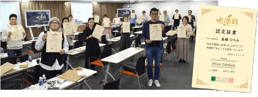 同時に取得できる「日本酒品質鑑定士」認定証書、「料飲サービス検定」合格証書もお渡しいたします。