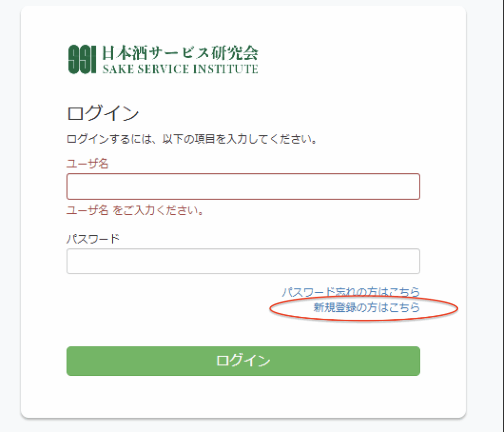 お申し込みには、日本酒サービス研究会(SSI)の受講システムにて「マイページ」新規登録が必要です。